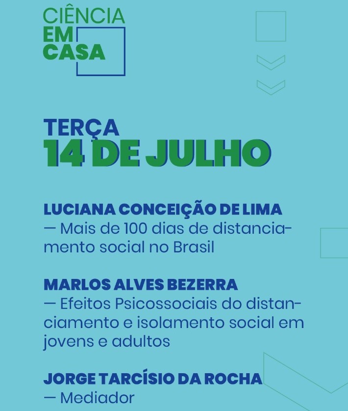 A edição do dia 14/07 (terça-feira) contará com a participação da docente do PPGDem, Luciana Lima. A partir das 15h, ela e os palestrantes convidados tratarão das consequências das medidas de distanciamento social. Reserve na sua agenda e confira!