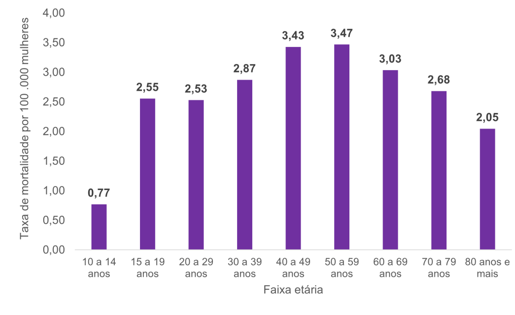 No período de 2010 a 2019, ocorreram 23.929 suicídios femininos no Brasil, representando 6,56 suicídios por dia e uma taxa de mortalidade de 2,72 óbitos a cada 100 mil mulheres.