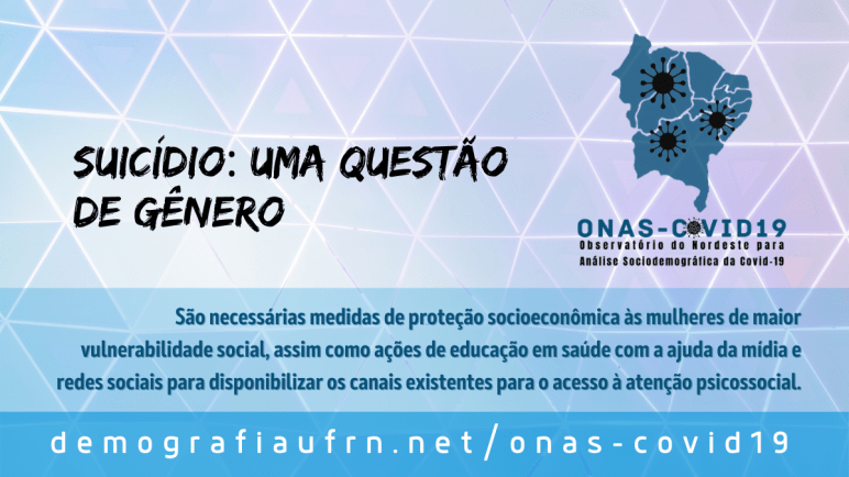 No nosso próximo texto discutiremos suicídios femininos no estado do Rio Grande do Norte no período de 2011 a 2020, e avaliaremos o possível impacto da pandemia nos suicídios no nosso estado.