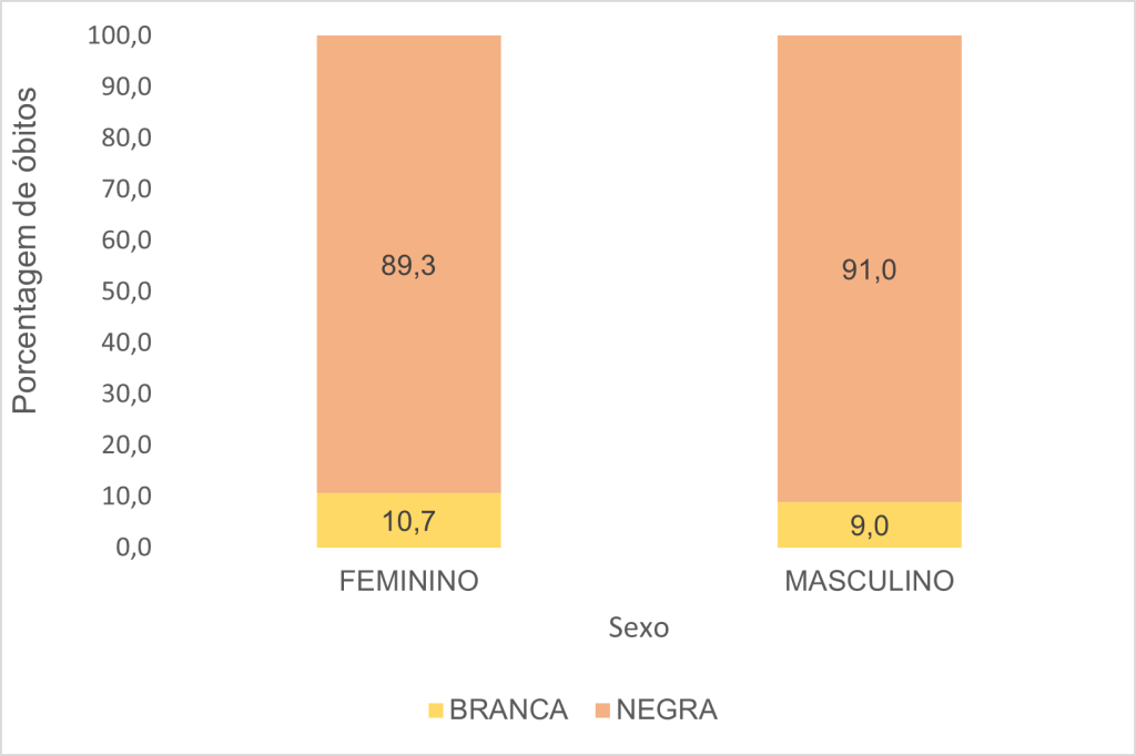 No período de janeiro de 2011 a 10 de março de 2021 verificou-se maior frequência de óbitos em negros tanto no sexo masculino quando no feminino, representando 88,01% dos suicídios (Gráfico 2). Discute-se que o racismo impacta fortemente na saúde mental da população negra, seja pela violência estrutural a que estão expostos cotidianamente, ganhando os piores salários e residindo em localidades com os equipamentos sociais de pior qualidade. Somado a estas condições, são mais expostos à violência policial e do crime organizado, aumentando o risco do desenvolvimento de transtornos mentais comuns (ansiedade, depressão entre outros). Destaca-se ainda que essa população tem maior dificuldade em ter acesso à atenção psicossocial, aumentando o risco de suicídio pelas barreiras no acesso à saúde.