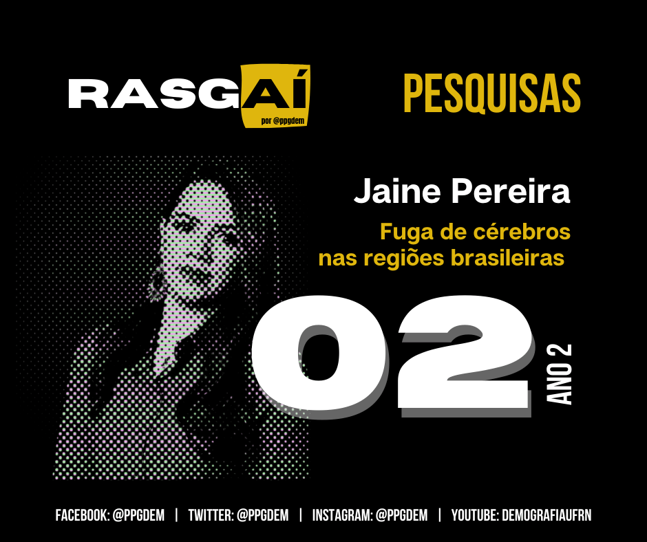 Este episódio 2 da segunda temporada do Rasgaí é com a doutoranda em demografia na UFRN, Jaine Pereira. Ela apresenta resultados da sua dissertação de mestrado defendida em 2021 aqui no PPGDem. Ela analisou a qualificação educacional e a inserção laboral dos migrantes inter-regionais no mercado de trabalho brasileiro no período de 2005 e 2015. Entre outros aspectos, ela destaca que o cenário econômico do período analisado refletiu uma maior mobilidade de pessoas qualificadas pelo país. Mas que, apesar disso, o perfil educacional dos migrantes reproduz as desigualdades sociais da sociedade em geral.