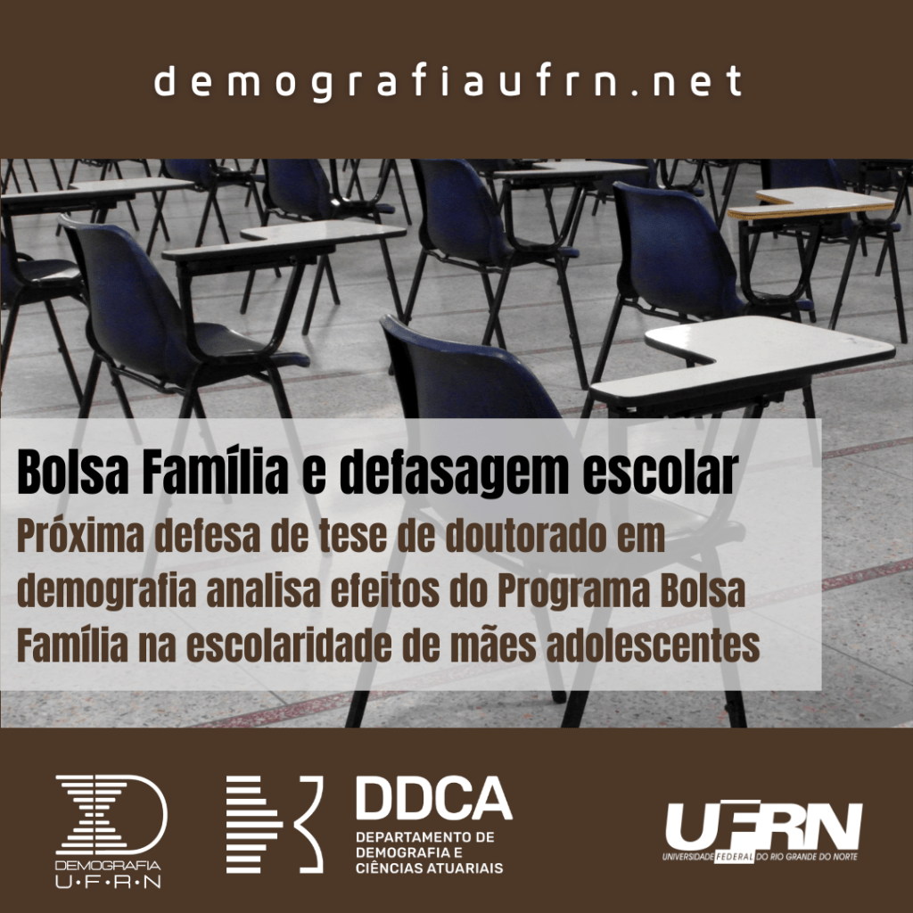 Ocorre na próxima segunda-feira, 19, a defesa de tese do discente Herick Cidarta Gomes de Oliveira junto ao Programa de Pós-Graduação em Demografia da UFRN. A pesquisa, orientada pela profa Luana Myrrha (PPGDem/UFRN) e coorientada por Dandara Ramos (UFBA), desenvolve uma análise dos dados longitudinais da Coorte de 100 milhões de Brasileiros (C100), resultado do convênio entre o PPGDem e o Cidacs (Centro de Integração de Dados e Conhecimentos para Saúde, Fiocruz-BA), para investigar se há um efeito do Programa Bolsa Família sobre a defasagem escolar percebida no momento da maternidade de mães adolescentes (até 19 anos). A análise priorizou a região Nordeste, com particular atenção ao Semiárido Setentrional devido às suas características de maior vulnerabilidade social.