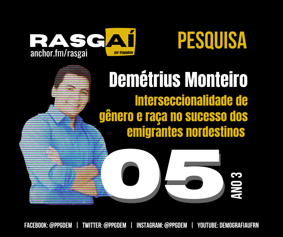 Mas será que essa relação entre migração e mobilidade social ascendente é igual para todas e todos? O episódio discute os resultados da pesquisa de mestrado do Demétrius Monteiro que teve como tema os efeitos da interseccionalidade de gênero e raça na mobilidade social dos emigrantes com origem no Nordeste brasileiro. Os resultados completos podem ser acessados no link abaixo.