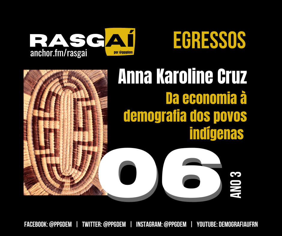A conversa deste episódio foi com a Anna Karoline Rocha Cruz. Ela fez o mestrado em demografia na UFRN e depois seguiu para um doutorado na mesma área na Unicamp. Hoje ela é professora universitária no Amazonas e incorpora nas suas aulas o conhecimento que acumulou ao longo da trajetória. Mais que isso, ela transitou entre o campo da economia, sua formação de base, e passou para a demografia estudando os povos indígenas. Um grupo populacional importante e que demanda estudos com essa perspectiva demográfica cada vez mais.