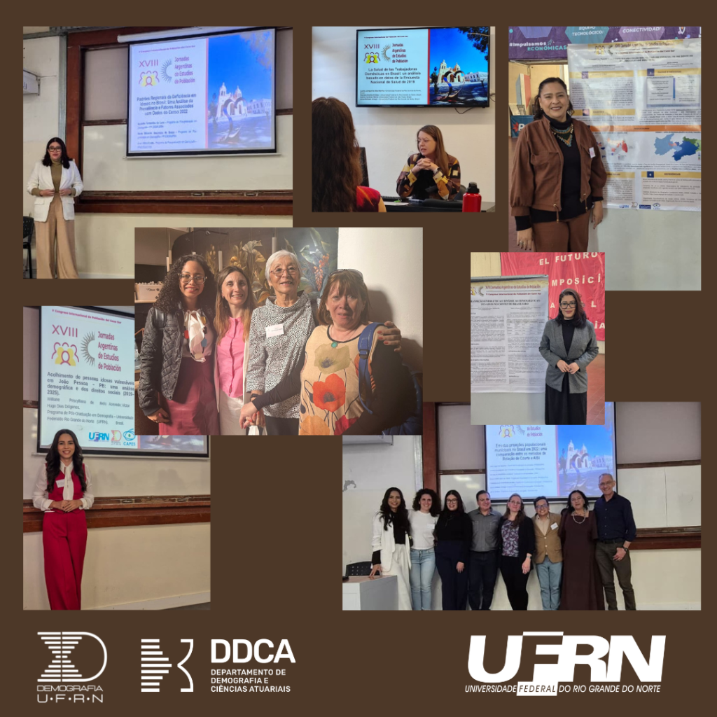 O Programa de Pós-Graduação em Demografia da UFRN (PPGDem) marcou presença nas XVIII Jornadas Argentinas de Estudos de População e que também foi palco do V Congreso Internacional de Población del Cono Sur, um dos mais relevantes congressos da área no Cone Sul, realizado em Córdoba, Argentina. O evento, que congrega pesquisadores para debater as grandes transformações populacionais e sociais da atualidade, serviu como uma importante plataforma para a divulgação da pesquisa demográfica produzida na UFRN, reforçando o intercâmbio científico em nível internacional.